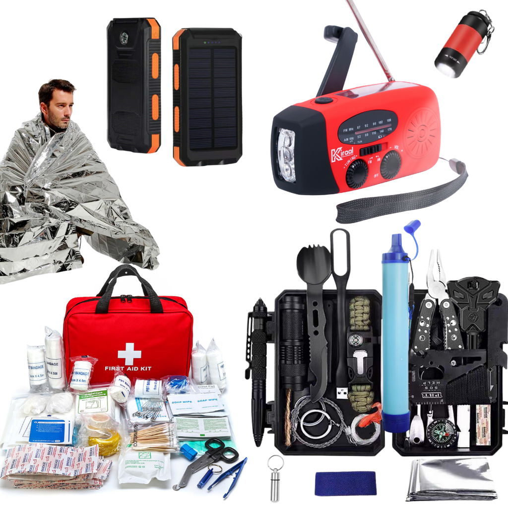 Wees voorbereid op elke situatie met het Kiraal Compleet Noodpakket. Dit uitgebreide 190-delige noodpakket combineert een praktische Survival Kit, een volledige 152-delige EHBO-set en essentiële extra’s zoals een Kiraal noodradio, powerbank met zonnepaneel, waterfilter en extra felle zaklamp. Of het nu gaat om een stroomuitval, kampeertocht, noodsituatie of ramp – met dit pakket ben je altijd klaar.